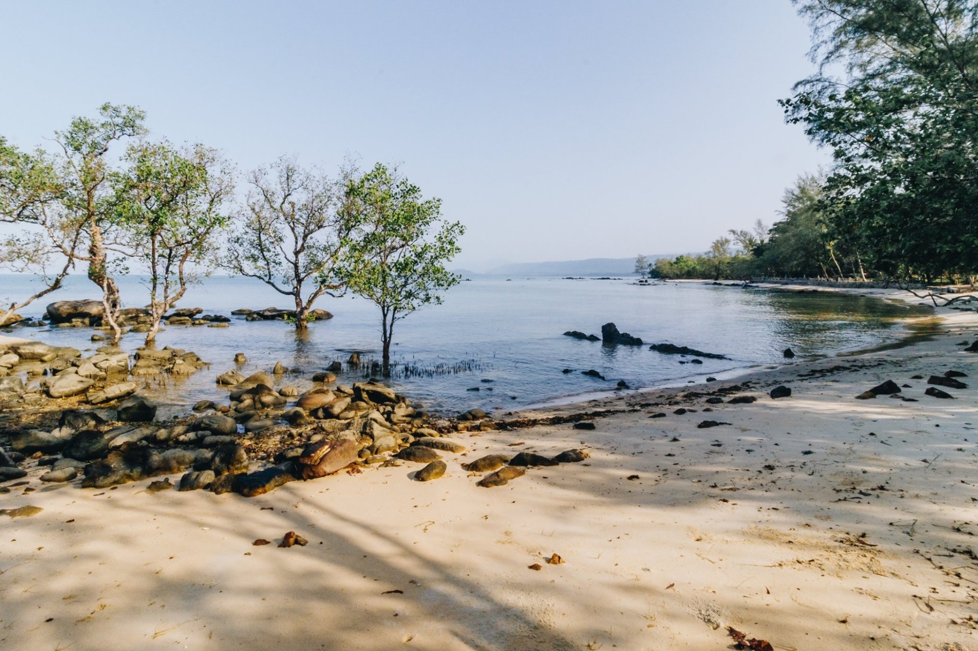 The Two-Colored Beach in Trat Province is a unique and scenic attraction located in the Ban Mai Rood community, Khlong Yai District. Its charm lies in the meeting point of two distinct sand colors: white and reddish-brown, which beautifully contrast with each other. The beach is shaped like a semi-circle and is surrounded by natural beauty, including ancient trees such as lumpoo and mangrove apple, over 100 years old, which have been carefully preserved by the locals. This makes the area serene and rich in biodiversity.